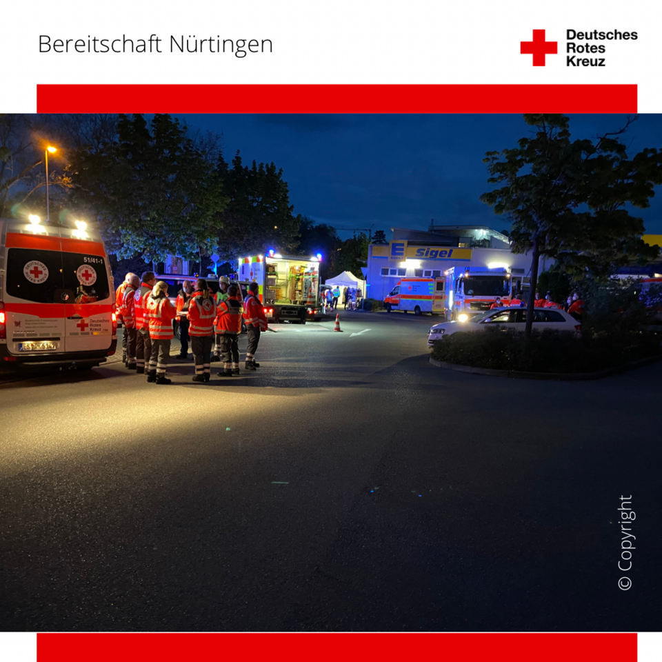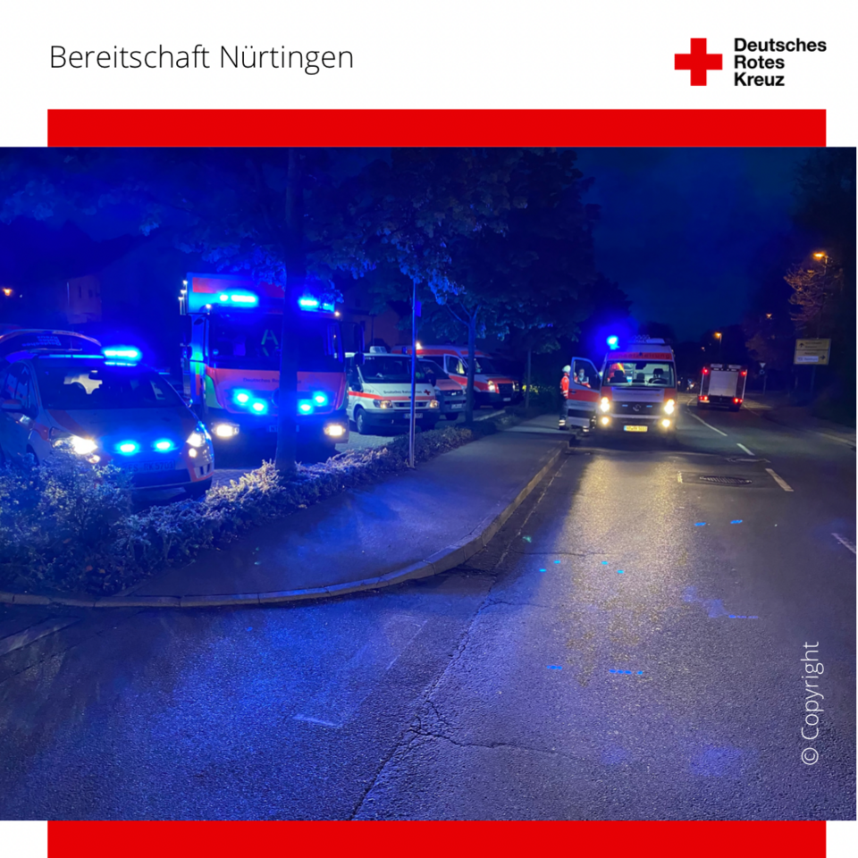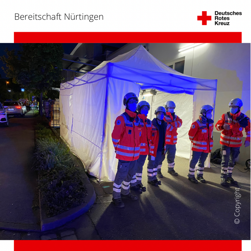 Das 2. Mal innerhalb von 24 Stunden alarmierte die Leitstelle Esslingen unsere HelferInnen zu einem Brandeinsatz. Die Einsatzkräfte wurden von den Funkmeldeempfängern aus dem Schlaf gerissen und zu einem bestätigten Brand in einem Seniorenheim in Nürtingen entsandt. Sofort rückten unsere HelferInnen aus und konnten bereits auf Anfahrt eine Rauchentwicklung erkennen. Vor Ort wurde sich mit der Einsatzleitung kurz abgesprochen und danach hieß es für unsere Einsatzkräfte: technisches Können einsetzten. Wir bauten einen großen Pavillon für die Sichtung und Behandlung von Verletzten auf und stellten durch unseren Stromgenerator die Stromversorgung und Beleuchtung sicher. ⠀
