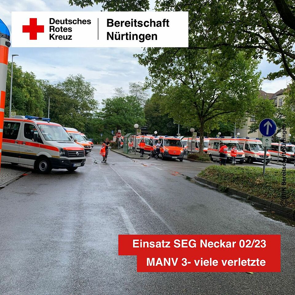 Durch den Rettungsdienst waren 200 Einsatzkräfte vor Ort. Wir als SEG Neckar wurden in den Bereichen Einrichten eines Bereitstellungsraums für alle Fahrzeuge, der Betreuung der nicht verletzten Betroffenen und beim Transport Verletzter in Kliniken eingesetzt.